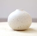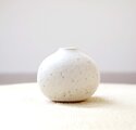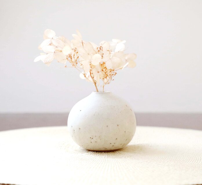 ふっくらと丸みのある一輪挿しに成形後、ほんのり生成色のマット釉をかけて焼き上げました。