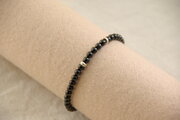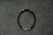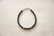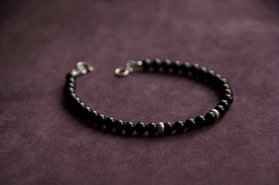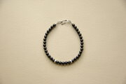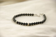 艶やかな漆黒の粒をつないだクールで知的なブレスレットです。中央部分2ヶ所にシルバービーズを入れ、あか抜け感とこなれ感を出しました。ひと粒の大きさは4.5ミリでやや細身のアイテムになります。否定的な力から身を守り、害をなす恐れのあるものを払いのける効果があるとされるブラックトルマリン。お守り代わりに。。。