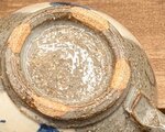 染付技法でゴスという絵の具で、800度で焼いた素焼の状態で絵を描き、