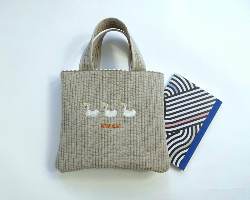 しっかり厚みの丈夫なヌビで、甘くなりすぎない白鳥モチーフ刺繍。
