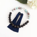 主玉:黒檀12mm(Ebony/エボニー)/パステルブルーカラーカオリン12mm(Pastel blue color kaolin/高嶺石)