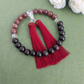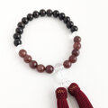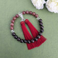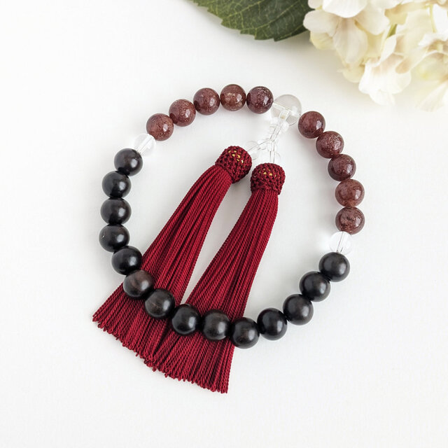 【男性用/主玉12mm】モスコバイトと黒檀・バイカラーの数珠・略式念珠/正絹臙脂房×水晶