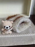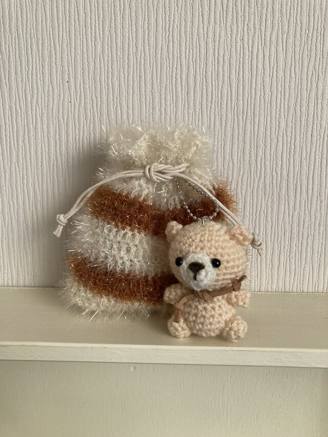 くまさんの編みぐるみキーホルダー付きポーチ。