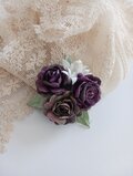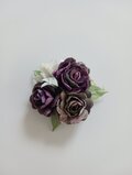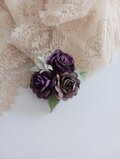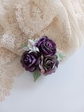 紫色に染めた薔薇に小花と葉を添え、シックでお洒落なブローチに仕上げました。