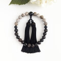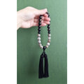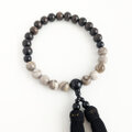 黒檀と天然石『シルバーリーフジャスパー』を上下半々に配した略式数珠です。