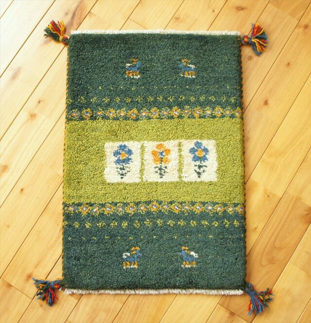 商品名: ペルシャ ギャッベ 緑色 花 ヤギ NN19431
