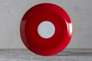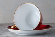 Style: Bold red porcelain with gilded details