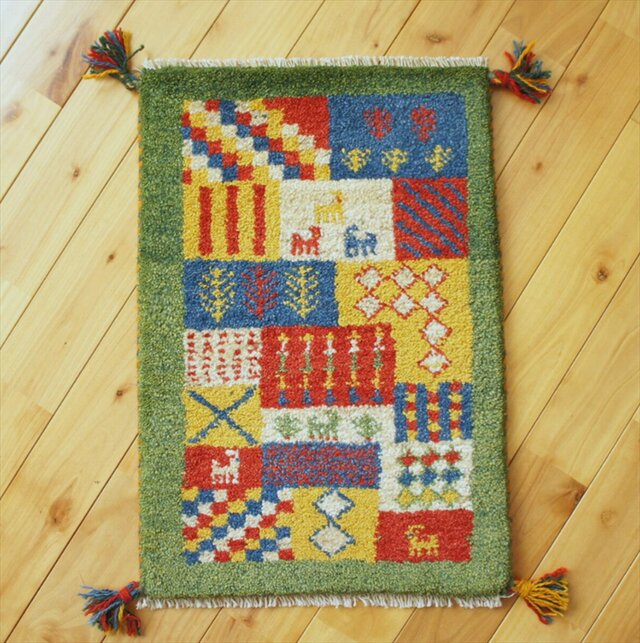 商品名: ペルシャ ギャッベ 緑色 カラグルなタイル NN18916