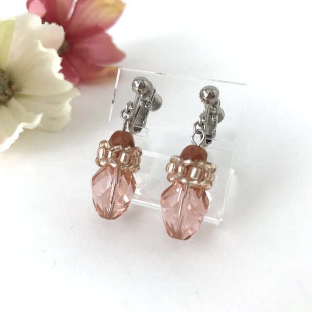 やさしいピンク色の上品なイヤリングです。