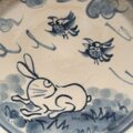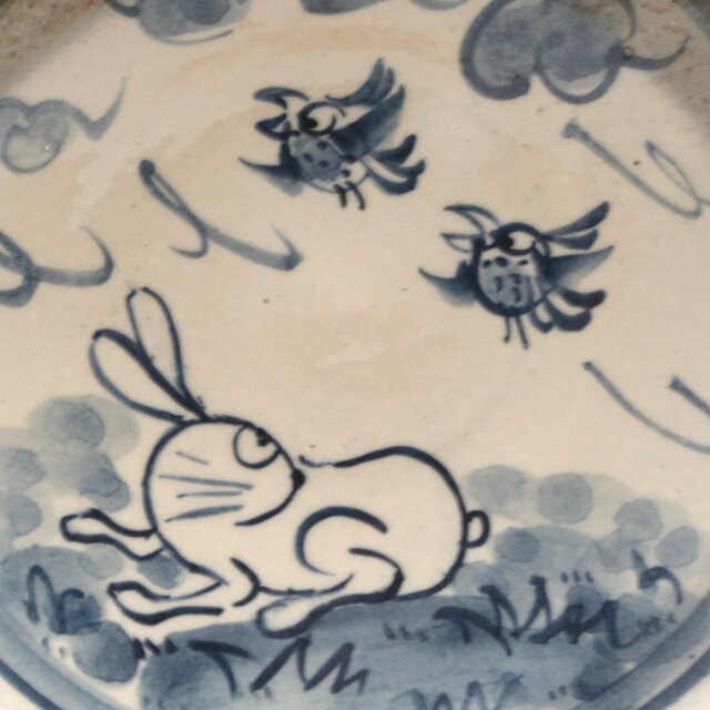 染付技法でゴスという絵の具で、800度で焼いた素焼の状態で絵を描き、