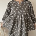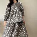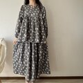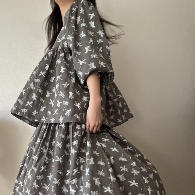 袖とスカート部分にはたっぷりとギャザーを入れ、動くたびにやわらかく揺れる、軽やかなシルエットに仕上げました。