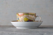 This fine Chamberlains Worcester cup and saucer embodies the refined elegance and imaginative flair of Regency England.