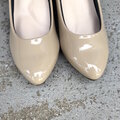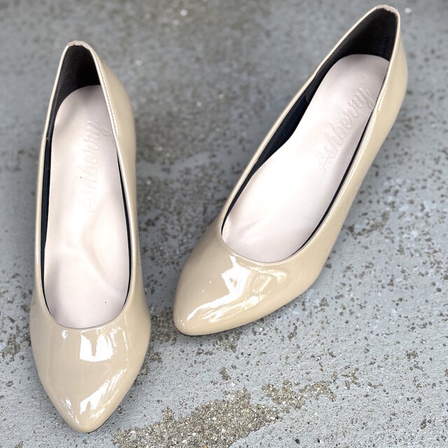 23.5cmのみ エナメルベージュ 5.5cmヒール 美脚シルエット MADE IN JAPAN