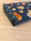 表地ドット部分は帆布、柴犬さんのポケット部分と裏地は綿ブロードになります。