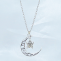 落ち着いた深みのあるアンティークシルバーを基調とし繊細なアラベスク調の透かし模様を施した大きな三日月を主役に仕上げました