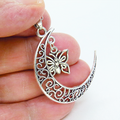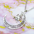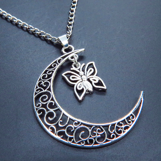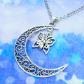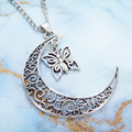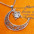アンティークシルバー 透かし三日月と蝶(バタフライ)の大人可愛いネックレス ムーン 長さ調整可 アジャスター可
