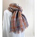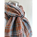 秋冬 イタリアンリネンのストール チェック キャラメルブラウン×グレー系