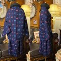 和洋折衷セミロングワンピース 着物アンサンブル 名古屋帯 藍の記憶 × 伝統絣のモダン・グラフィックス aKW-154