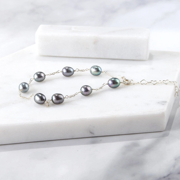 淡水パールをリズミカルに連ねたステーションブレスレットです。