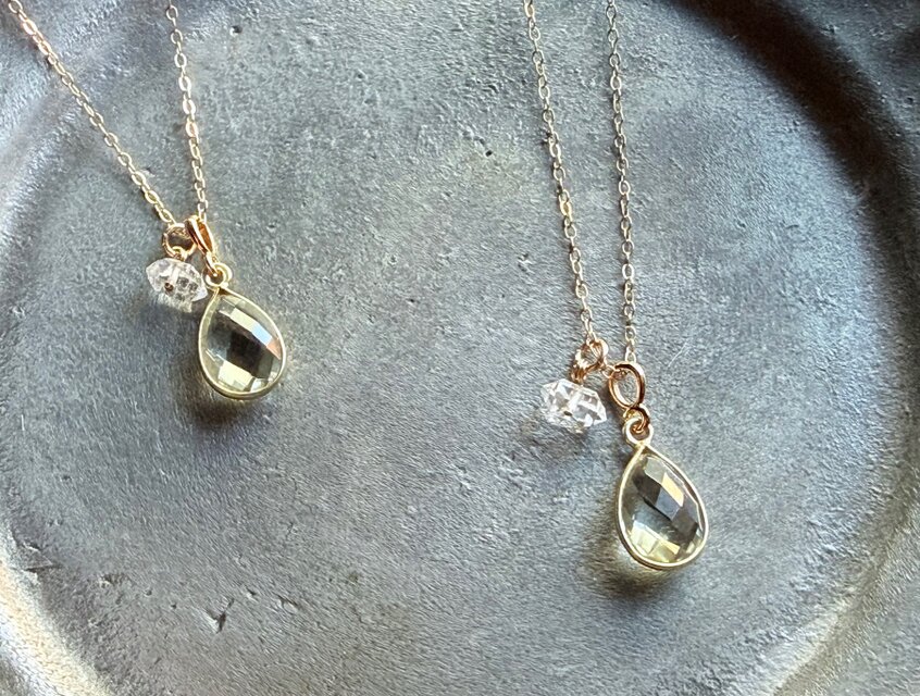 【2月・4月の誕生石】心を澄ませ、前を向くために。 グリーンアメシストとハーキマーダイヤモンドの透明感ネックレス(K14GF)