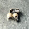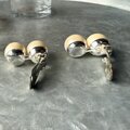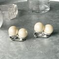 ぷっくりとした2つのパールが並ぶデザインは、クラシックでありながらモダンな印象を与えます。シルバートーンをベースにし、クールなアクセントも魅力的です。