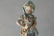 アイテム:瀬戸焼 陶器人形 / 果物持ち田舎子供人形(希少品)/ 作家刻印:J.MORIE(刻印あり)
