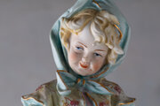 Vintage Seto Ware Country Girl Figurine Holding Fruit, JMORIE Artist Mark, Maruyama Pottery, Japan Showa Mid-Century