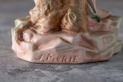 Item: Seto ware ceramic figurine / country child doll holding fruit (Rare piece) / Artist mark: J.MORIE (incised mark)