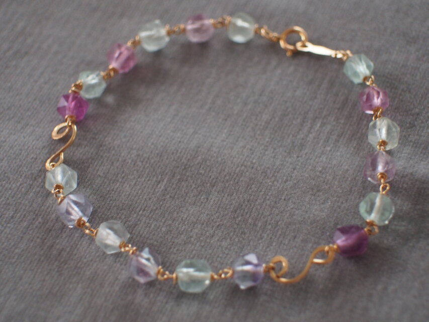 14kgf 多面カットで素敵なフローライトのブレスレット k14gf 優しい色合い