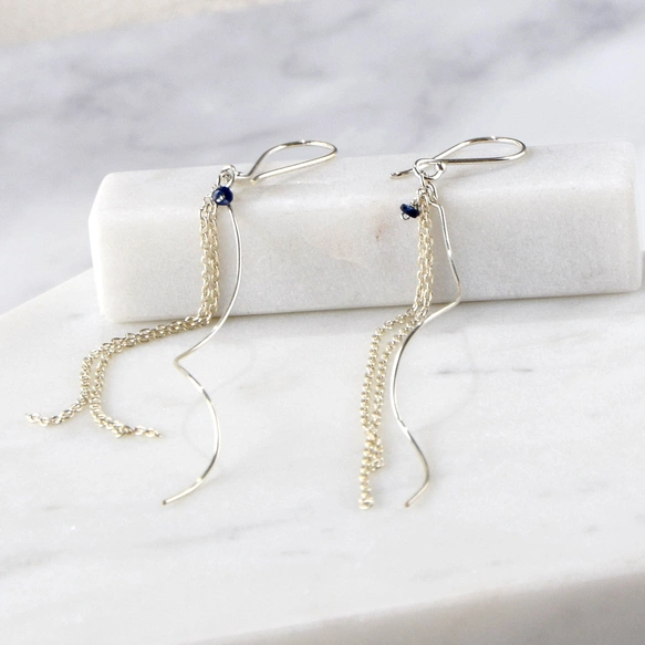 静線 SV925 ロングウェーブラインxブルーサファイアピアス