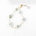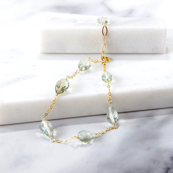 ミントグリーンの淡い色合いが美しい、プラジオライト(グリーンアメジスト)を贅沢に使用したステーションブレスレットです。