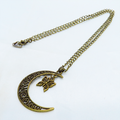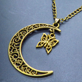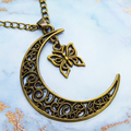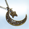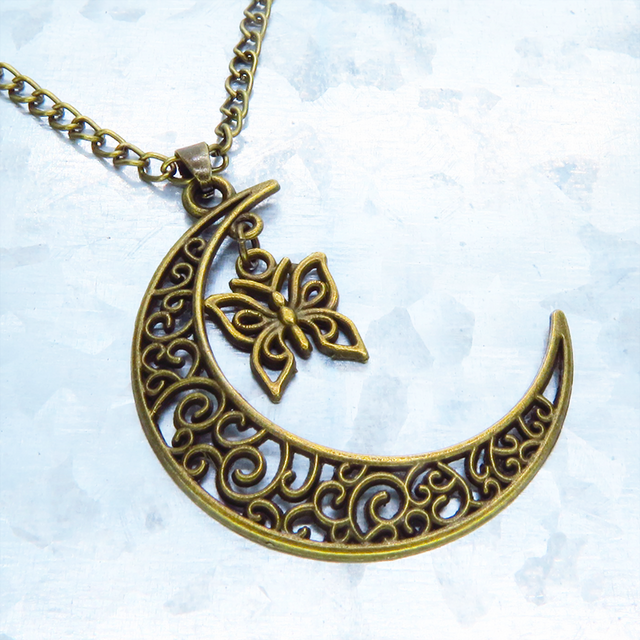 ご使用後は、柔らかい布で指紋や汗を優しく拭き取ってください。三日月の透かし部分や吊り下げられた蝶のパーツは繊細ですので、衣服への引っかかりや強い衝撃には十分ご注意ください。アンティーク調の落ち着いた風合いを長く保つため、水濡れを避け、湿気の少ない場所で大切に保管することをおすすめします