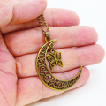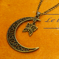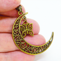落ち着いた深みのあるアンティークゴールドを基調とし繊細なアラベスク調の透かし模様を施した大きな三日月を主役に仕上げました