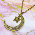 アンティークゴールド 透かし三日月と蝶(バタフライ)の大人可愛いネックレス ムーン 長さ調整可 アジャスター可