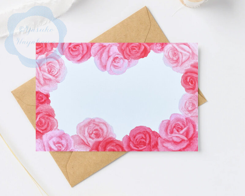 記入例)(68)ピンクの薔薇の花のリース x 2枚 (3)アジサイx1枚