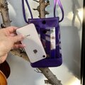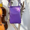 パープルの牛革と日本の伝統的な着物生地が美しく調和したスマホポシェットができました。