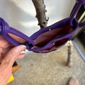 パープルの牛革と着物生地のパッチワーク、さらに刺し子を施してあります。