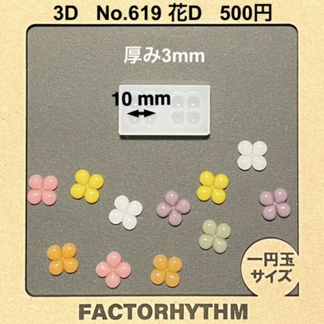 No.619 花D シリコンモールド 3D 型 レジン Flower