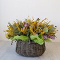 コロンと丸い形が可愛いバスケットに、ミモザの花を思いっ切りたくさん入れてアレンジしました。