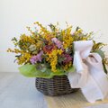 春を届けてくれる!!ミモザとガーベラの大きなバスケットアレンジ
