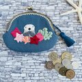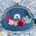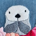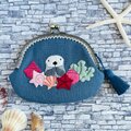 そんなラッコが小さなお手手を合わせた姿を刺繍した、フラットタイプで大きめのがま口です。