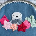 色鮮やかな貝やヒトデ、昆布なども刺繍しました。