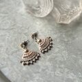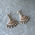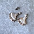 扇形のデザインに細かなビーズフリンジがあしらわれた、3トーンカラーのダングルピアス。
