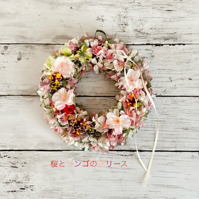 桜、小花、アジサイ (アーティフィシャルフラワー)リボン