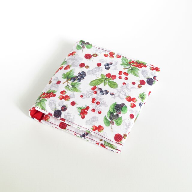 ポーチ/赤/レッド/ベリー/フランス生地/いちご/苺/ぶどう/葡萄/フランボワーズ/果物/くだもの/輸入生地/海外生地/ヨーロッパ/ブルーベリー/ラズベリー/ブラックベリー/フルーツ/フルーツ柄/フルーツモチーフ/サニタリーポーチ/ナプキン/生理用品/サニタリーケース/ハンカチ風/ハンカチポーチ/小物入れ/布小物/プチギフト/プレゼント/ギフト/母の日/かわいい/楽しい/カラフル/librairie