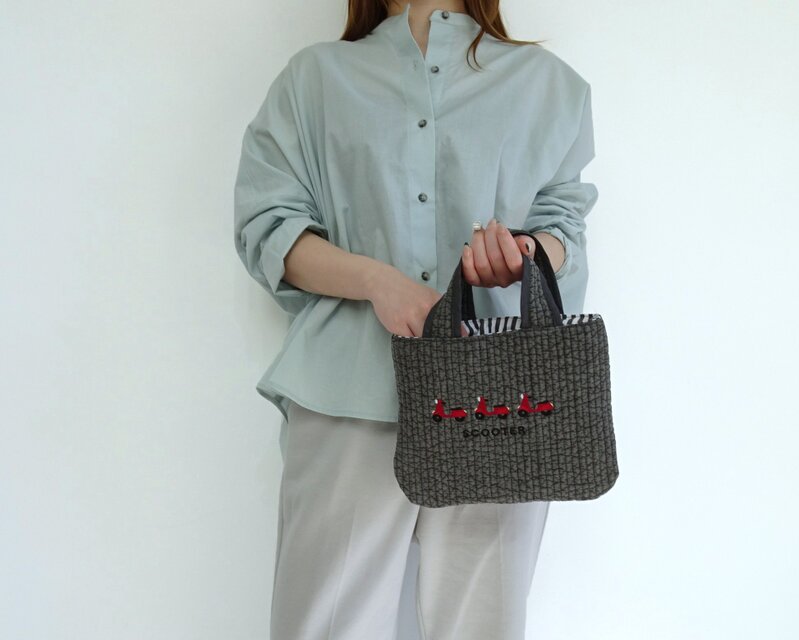しっかり厚みの丈夫なヌビで、甘くなりすぎないスクーターモチーフ刺繍。
