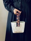 持ち手にはインドの刺繍リボンを、取り外しができるようにしました。
