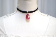 【受注製作】レジンアート ドロップモチーフとタティングレースとベルベットリボンのチョーカー〈花葬列〉