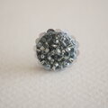 グレーの濃淡をランダムに丸く編み、3㎜のスパンコールを周りにつけました。さりげなく小さなフリルは、甘すぎず、程よい柔らかさと華やかさを出しています。