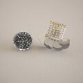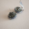 丸の粒々に小さなスパンコールを一周ぐるりと編み付け小さなフリルがついたピアス/イヤリングです。